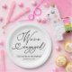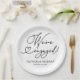 Cute calligraphy engagement party paper plate. Easy to personalise with your details. Please get in touch with me via chat if you have questions about the artwork or need customisation. PLEASE NOTE: For assistance on orders, shipping, product information, etc., contact Zazzle Customer Care directly https://help.zazzle.com/hc/en-us/articles/221463567-How-Do-I-Contact-Zazzle-Customer-Support-.