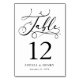 This table number card features black whimsical flourish typography on a white background. You can add your details in the customise menu. This menu is part of a beautiful matching wedding suite that can be fully personalised.