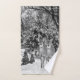 This winter wonderland hand towel features a black and white snow scene with whitetail deer. I created this winter season towel from one of my original background photographs. Two cutout illustrations of whitetail deer and snow were added as overlays. Use this hand towel in his bathroom, and it's perfect for a hunting lodge. Know that a set of hand towels would be a thoughtful housewarming or another occasion gift for that special someone.