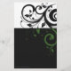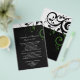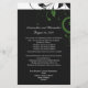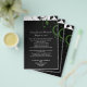 Elegant yet bold modern contemporary black and white wedding invitation set with white and forest green accents, Add a special touch with the delicate swirl scroll leaf background. Customise online with your wedding details.