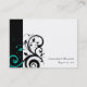 Bold and striking modern contemporary black wedding invitations with white and aqua teal turquoise accents, with festive swirl scroll leaf background. Customise online with your wedding details.