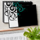 Black White Teal Floral Swirl Wedding InvitationDesigned by Angela CuteComfy Designs