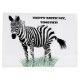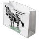 Add a wild touch to gifts with this personalised gift bag. It features a realistic style illustration of a zebra in black and white standing in some green grass with your own custom message in bold black lettering.
