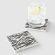 The coasters are gorgeous, a quality feel and heavy weight. They look like a precious archeological find. A rustic stone juxtaposed with a modern floral black and white print. I like the way the print goes slightly imperfect on the cut stone edges giving them a kind-of natural beauty.