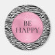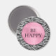 Black and White Zebra Print be happy on glam pink circle personalized inspirational magnet