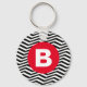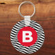 Black and White Zig Zag Pattern Red Monogram Key Ring