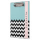 Black and White Zigzag, Chevron, Blue, Your Name Clipboard