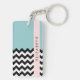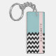 Black and White Zigzag, Chevron, Blue, Your Name Key Ring