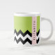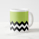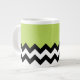 Black and White Zigzag, Chevron, Green, Your Name Large Coffee Mug