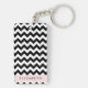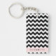 Black and White Zigzag, Chevron Pattern, Your Name Key Ring
