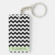Black and White Zigzag, Chevron Pattern, Your Name Key Ring