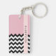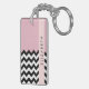 Black and White Zigzag, Chevron, Pink, Your Name Key Ring