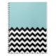 Black and White Zigzag Pattern, Chevron, Blue Notebook
