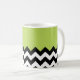 Black and White Zigzag Pattern, Chevron, Green Coffee Mug