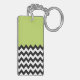 Black and White Zigzag Pattern, Chevron, Green Key Ring