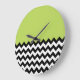 Black and White Zigzag Pattern, Chevron, Green Large Clock