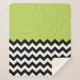 Black and White Zigzag Pattern, Chevron, Green Sherpa Blanket
