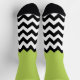 Black and White Zigzag Pattern, Chevron, Green Socks