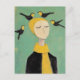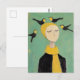 Black and Yellow Birds on Her Head Whimsy Painting Postcard