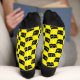 Black and yellow cat Halloween pattern Socks. Unique accessory costume for her. Spooky Halloween design with black cat heads with bright yellow eyes. Custom fun Halloween costume party socks with many different colours.