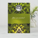 BLACK AND YELLOW DAMASK GEM STONE MONOGRAM INVITATION