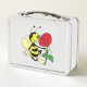 Black and yellow hornet wasp bee with a red rose metal lunch box