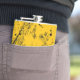 The flask itself is fine. It’s a cheap flask, obviously bought in bulk, however am prepared to overlook that. Given that it is a personalized item, I would have liked to have seen gift boxing instead of the generic packaging. Terrible printing, and/or quality. It’s a cheap, tacky vinyl. It is not cut straight and is also applied in a way that it is overhanging the bottom, causing the glue to catch on items and it will eventually roll and tear, damaging the wrap.