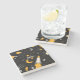 Black and Yellow Stars, Moon Outer Space Rocket Stone Coaster