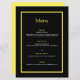 Black, yellow and white wedding flat menu. Celebrate in style luxuriously with this entire elegant collection, it will add a stunning touch to your event. Parts of this collection can be personalised. This collection is customisable. Enjoy your celebration, cheers!