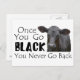 A photograph of a young Black Angus breed of cow, on a postcard with a funny black pride statement that has a whole new meaning when we're talking about the black angus cattle!