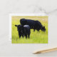 A colour photo of two Black Angus cattle grazing together in a field. The perfect cow gift for the herdsman or country folks.