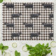 Painting of black Angus Cows on a dark brown gingham background.