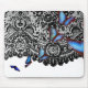 BLACK ANTIQUE LACE BLUE BUTTERFLIES MOUSE PAD