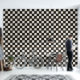 A black and off-white chequered pattern with distressed shading and a vintage feel.