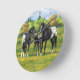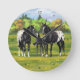 Black Appaloosa Horses In Summer Pasture Round Clock