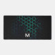 Black aqua blu honeycomb geometry pattern Monogram Desk Mat