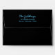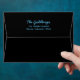 The text on this black and aqua blue A7 (fits 5"x7" Zazzle invitations and greeting cards) envelope is fully customisable and you can change it using the personalise option. For more extensive changes to the envelope, including changing the font, font colour, or text placement, use the customise option. The colours on this envelope are black and aqua blue. It is meant to match the Bar Mitzvah invitation set in the same colours.