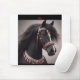 A black Arabian Horse wearing a red jewelled show costume, printed on a Mousepad.