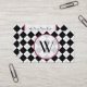 A business card featuring a black argyle background with pink trim. Black text over sheer white. Personalise with your information. Opposite side features matching argyle background. Add your initial inside pink circle shaped frame. To adjust text or to change font size, style, or colour, just click "customise it!"