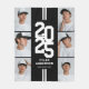 Modern black & white athletic graduation blanket featuring an eye-catching class year layout in a varsity font, a photo collage of the grad, two white stripes, their name, and the school or college they attended.