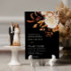 Black Autumn Modern Watercolor Terracotta Wedding Invitation. This elegant and rustic wedding invitation features hand-painted watercolor burnt orange and terracotta leaves, cream and beige dahlias, and beautiful rust-coloured roses perfect for a fall or autumn wedding!