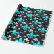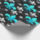 Black Back Blue White Fleur De Lis Wrapping Paper