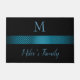 Black Background And Blue Grey Stripes Doormat