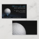 Business two-sided business card with a picture of golf ball and a tee on a black background for use in the golf sector.