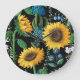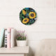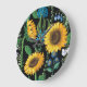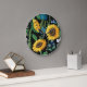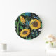 Black Background Sunflower Pattern Large Clock