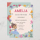 Black Ballerina Princess Floral Girl Birthday Invitation