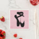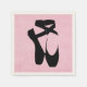 A silhouette illustration of a pair of black ballet shoes / slippers standing in the classical and contemporary ballet dancers pose up on the tips of their toes, known as en pointe. Background is pink with little white polka dots.