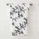 On this stylish towel set is a shaded black bamboo pattern repeated on a white backdrop creating modern elegance