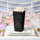 This formal black Bar Mitzvah party popcorn favor box features elegant typography over a grey Star of David for a Jewish boy who is called to the Torah. Modern, minimalist and cool gifts for a teen.