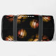 Black Basketball Ball Metallic Pattern Sports Name Duffle Bag. This sports bag features vibrant metallic basketballs against a dark background. The shimmering balls add a modern touch to the design. Add your name.